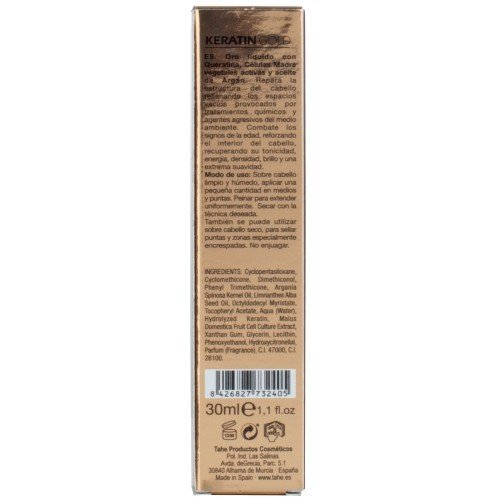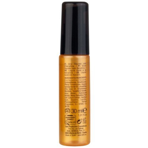 Descubre la magia del Sérum capilar Keratin Gold, una fórmula de alto rendimiento que transformará tu cabello desde el interior hasta las puntas. Desarrollado con una combinación única de Queratina, células madre vegetales activas y aceite de Argán, este sérum es el secreto para revitalizar el cabello, dándole una nueva vida y rejuveneciendo su apariencia.